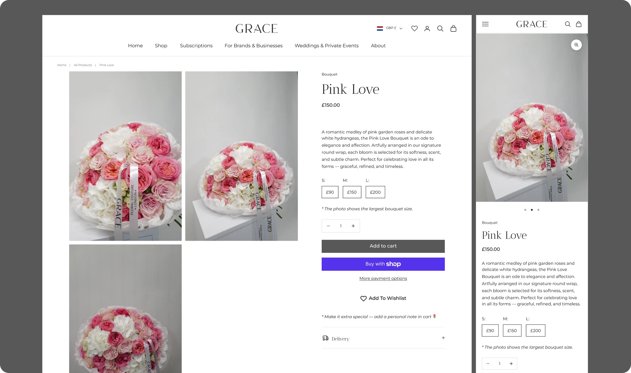 Grace Floral London approached us to redesign their existing website and elevate the digital experience in line with the brand’s premium positioning.The goal was to create a refined visual identity, improve catalog usability, and introduce advanced tools for subscriptions, customer engagement, and support.